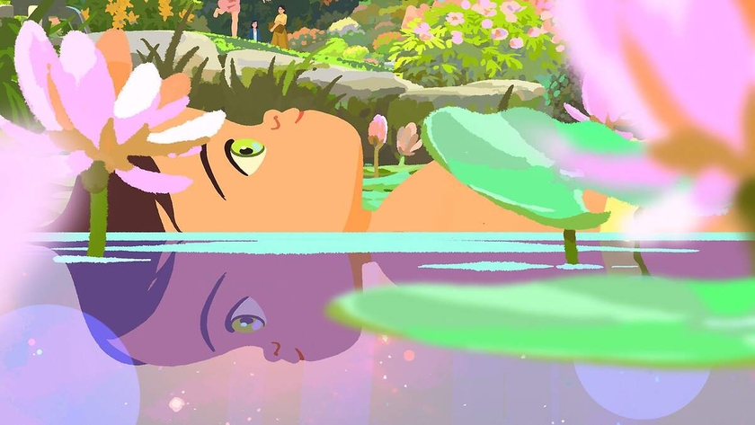 Mailys Vallade: For many years now, we have enjoyed working with this graphic style, which has no outlines and is simplified by the use of color blocks or flat areas of color, in a rather impressionistic way, often very close to the characters. It is the sensual aspect and the fact that there are no boundaries between the shapes of colors, between characters and backgrounds, as well as the light that shines on the whole, which for us forms a very sensual, connected whole. With our artistic director and co-screenwriter Edine Noël, we had a few painters as references—Joaquin Sorolla, Henri Rivière, Hasui Kawase, Sydney Smith, for example—and many others.
